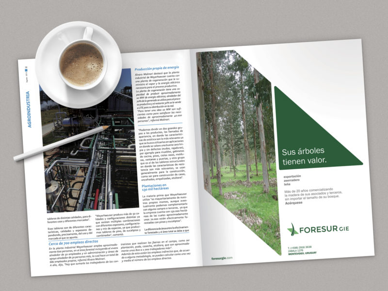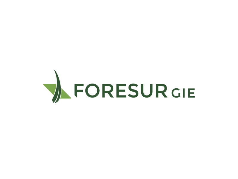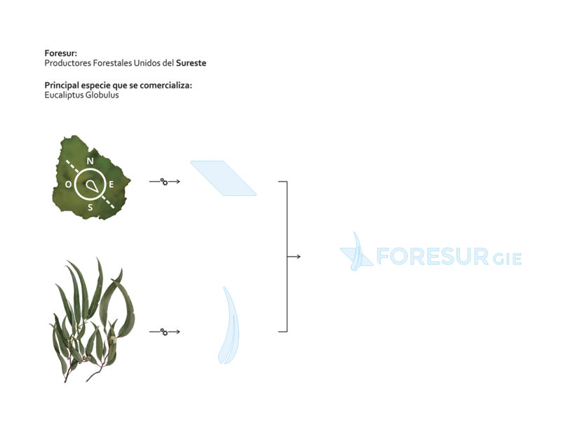 El isologotipo de Foresur sintetiza su origen, se trata de una empresa que nuclea a productores forestales del Sureste de Uruguay.